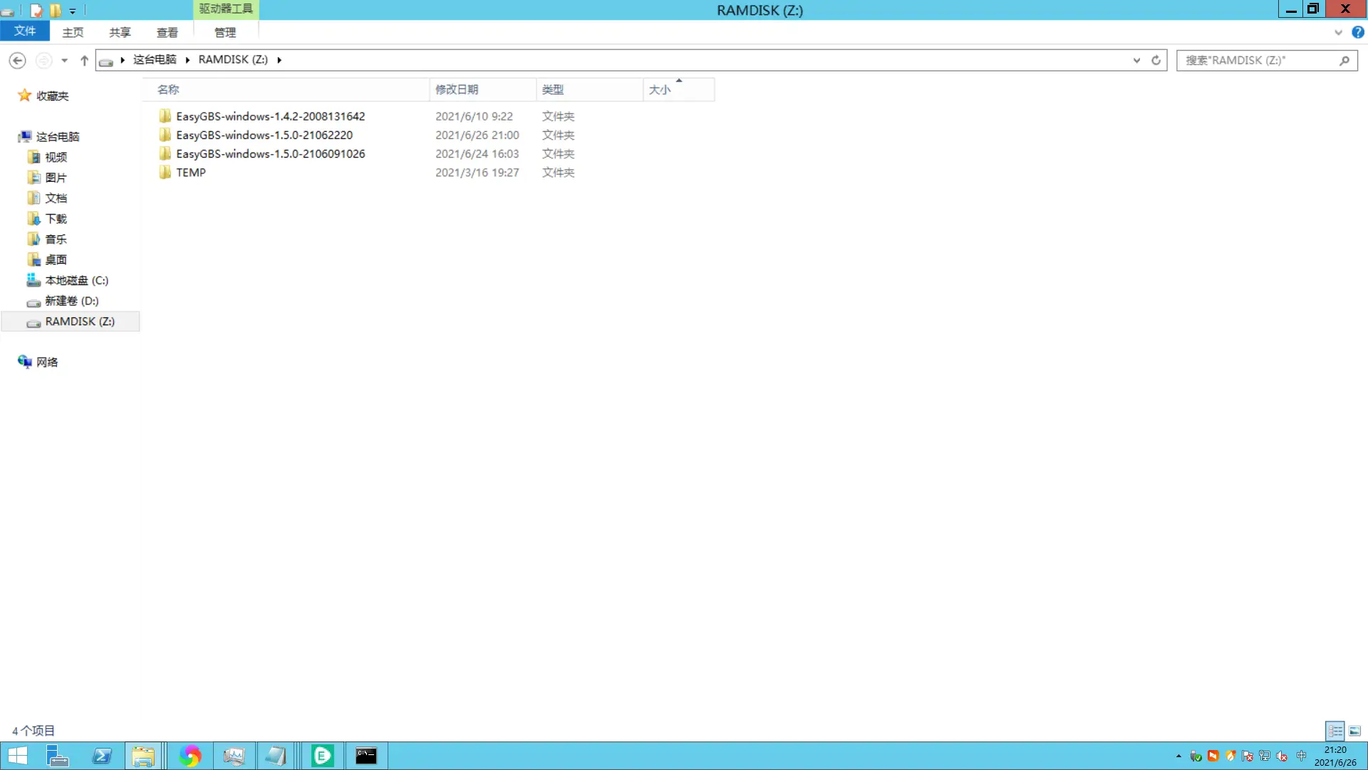 2、建好虚拟盘之后可以将EasyGBS文件夹拷入新建的ramdisk盘里;