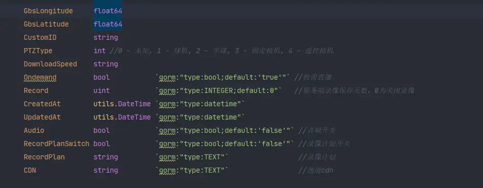 CDN string `gorm:"type:TEXT"` //通道cdn