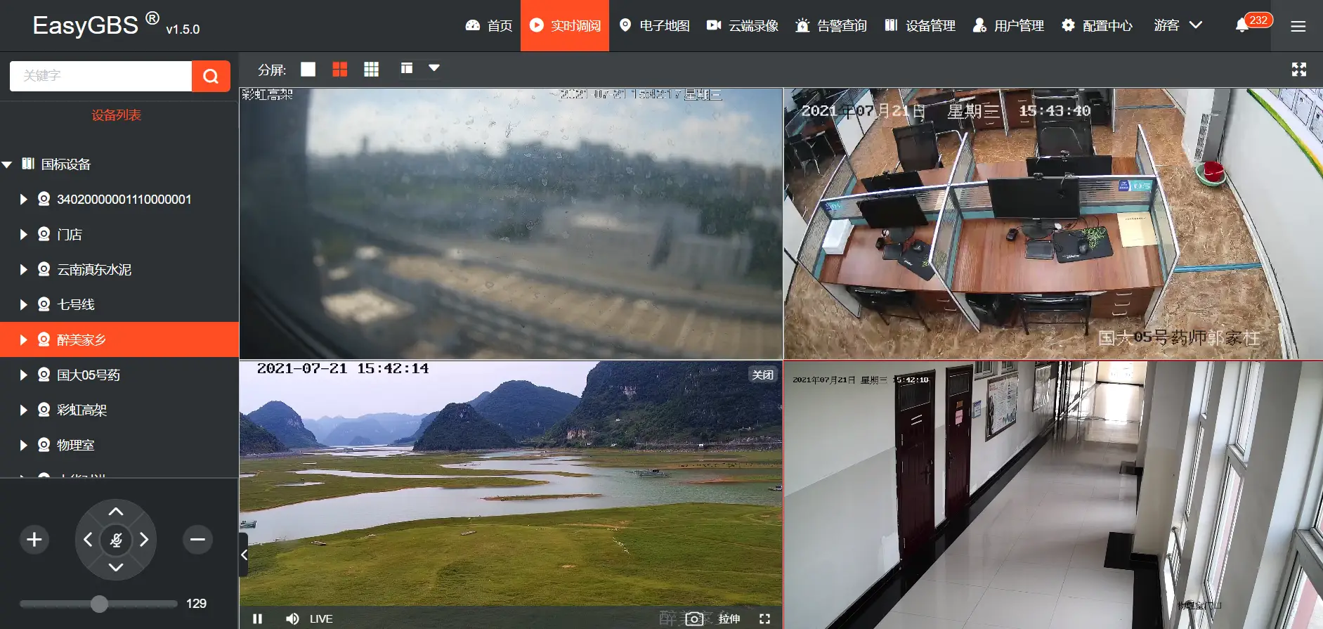 为了方便用户对通道的归类管理和筛选,EasyNVR、EasyGBS等平台的实时调阅页面设立了树状图分组,且同时具有云台控制、语音对讲功能。