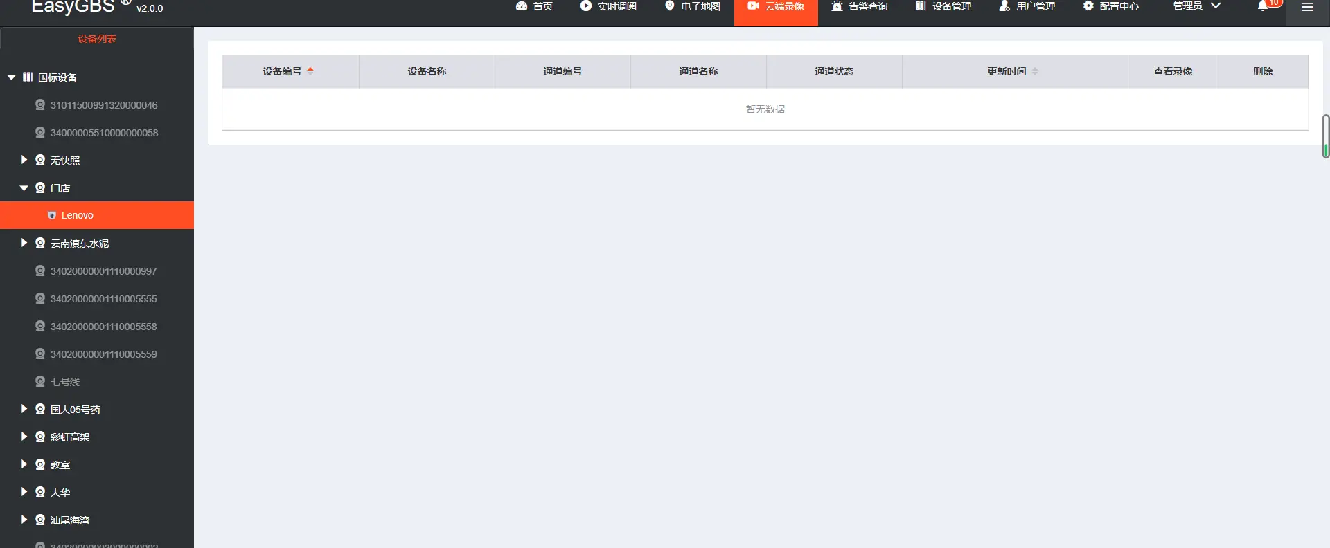 最后形成预览如下,查询的设备无通道的情况下正常显示无信息: