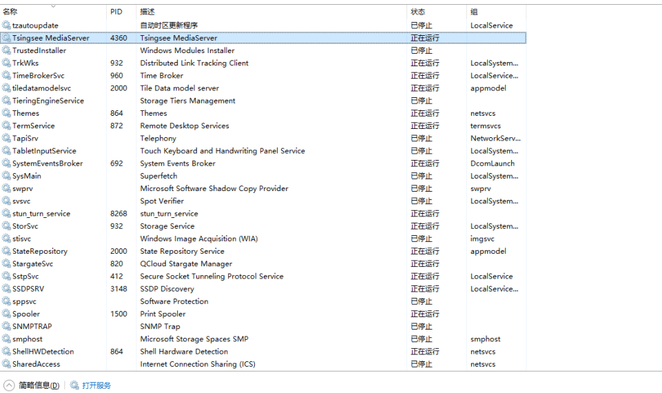 再次启动程序,能够看到,easydss以服务方式启动的服务程序Tsingsee Mediaserver服务。