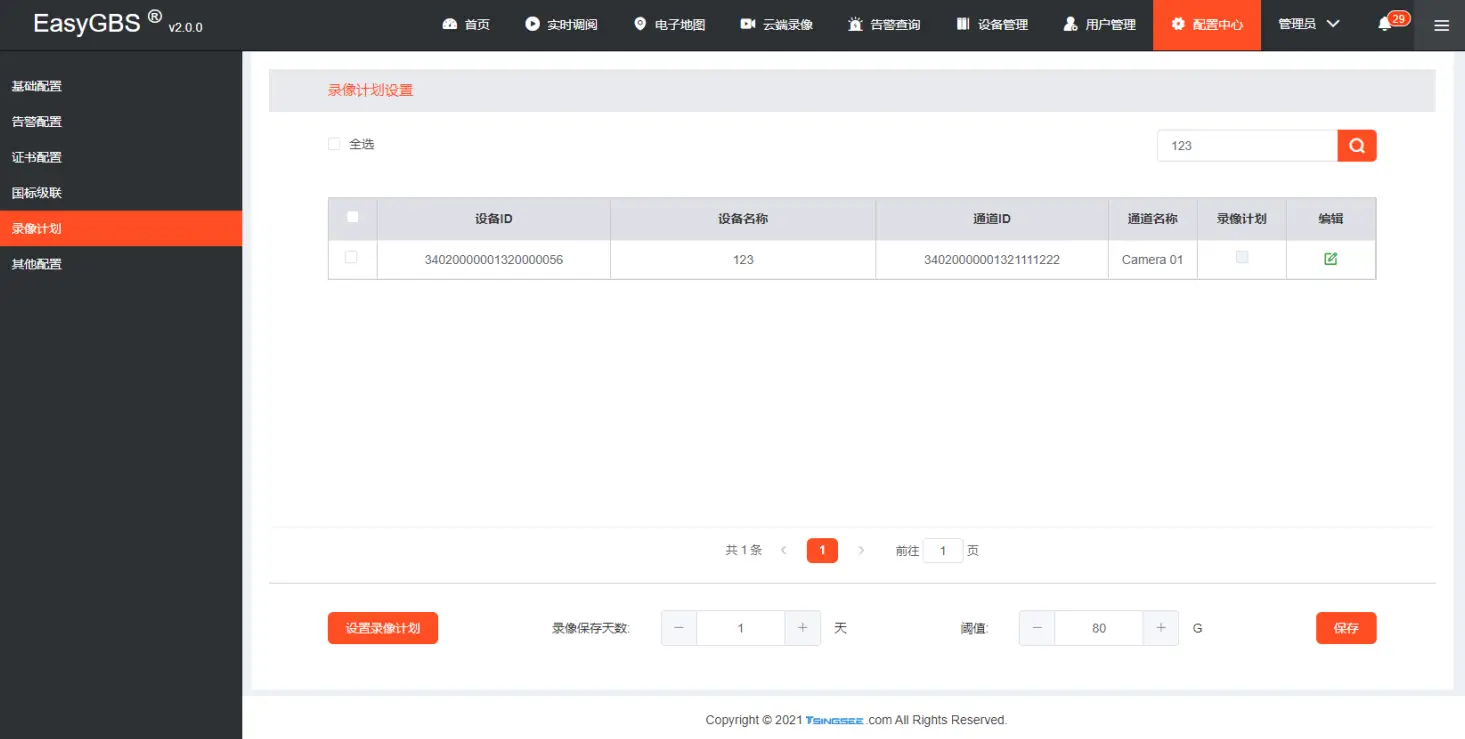 EasyGBS录像计划查询通道列表添加通道及设备名称搜索功能