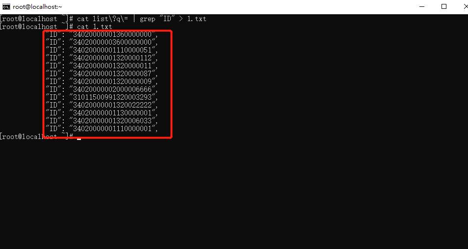 6.查看1.txt里面就是所有在线设备的国标编号了