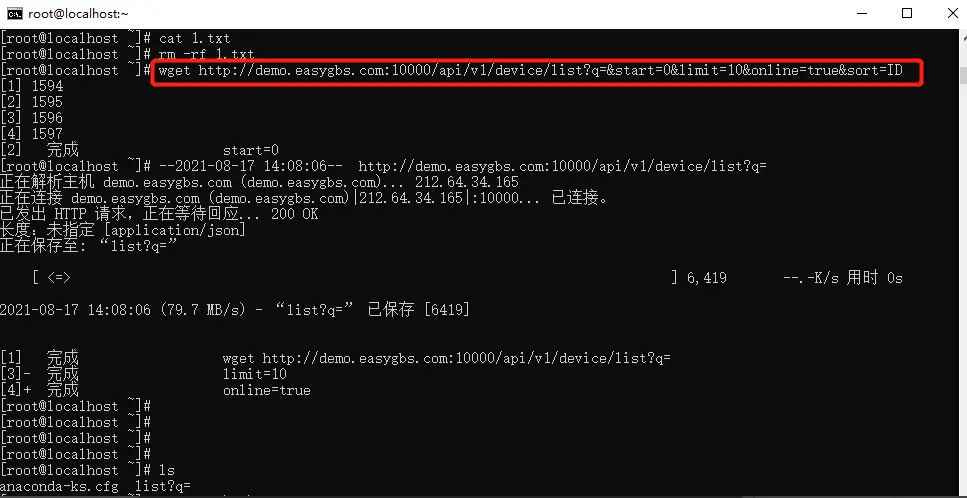 4.我们将此接口在linux内进行运行,会得到一个list文件