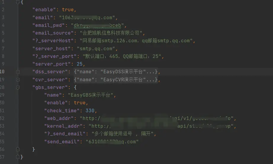 该功能的核心就是需要循环监听EasyGBS服务,当发现服务请求失败,则向管理员发送邮件通知。在配置文件中可配置是否开启、循环监控时间等,如下: