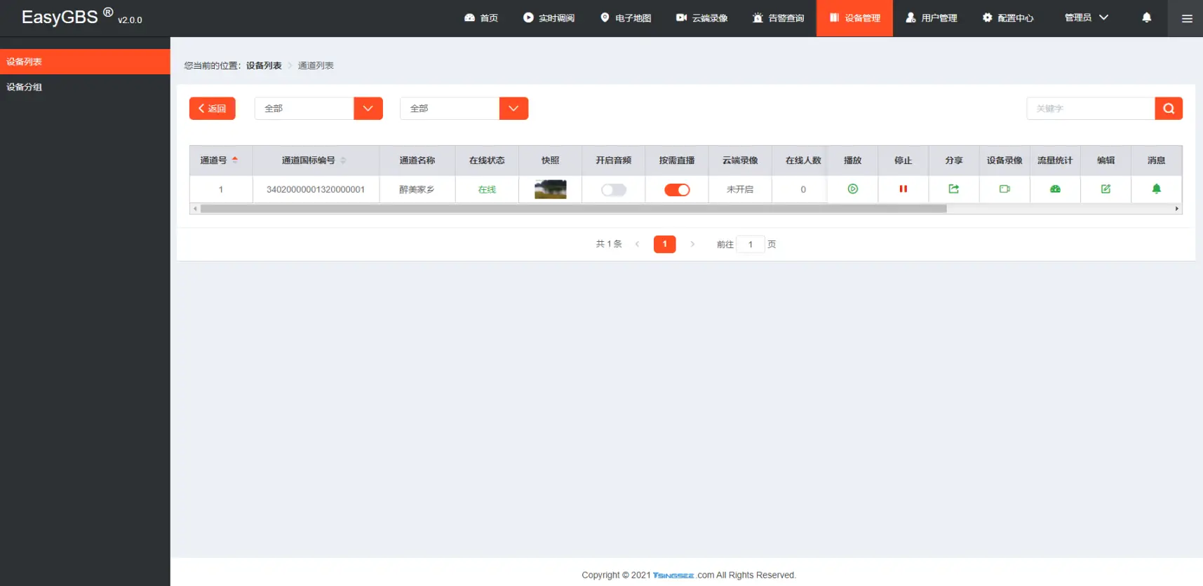 由于最近EasyGBS更新了新版内核,我们在对新版EasyGBS做通道测试时,发现通道刷新之后快照数据库内容字段就丢失了。