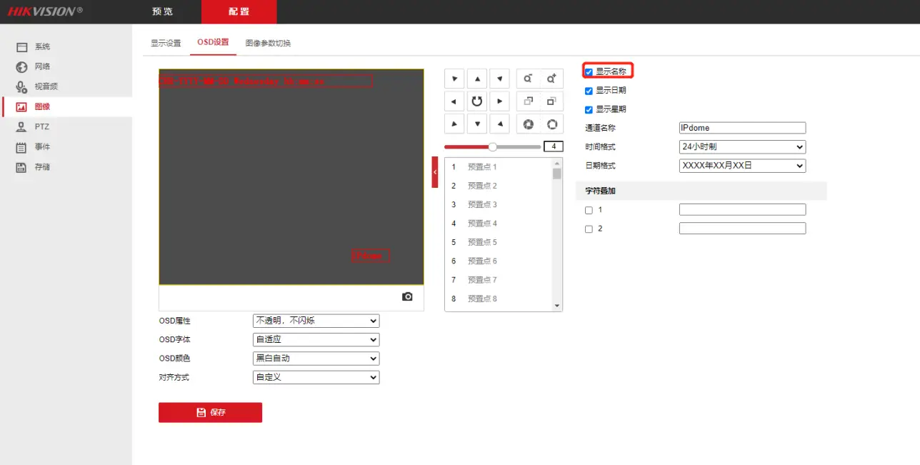 2.选择OSD设置,并且将显示名称进行勾选,勾选之后就可以修改通道名称了,修改之后保存。