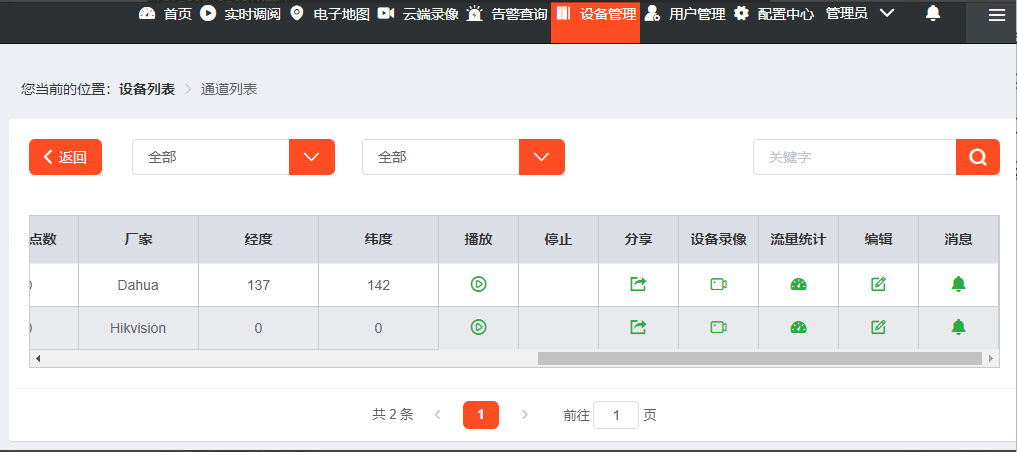 几个月前,我们在EasyGBS的新版本中加入了设备定位功能,使用了百度地图循环渲染定位和点击定位的图片,在后端上实现了定位功能后,结果需要反馈到前端显示,即具体展现出设备的经纬度,我们将经纬度一栏放在了设备管理当中显示。