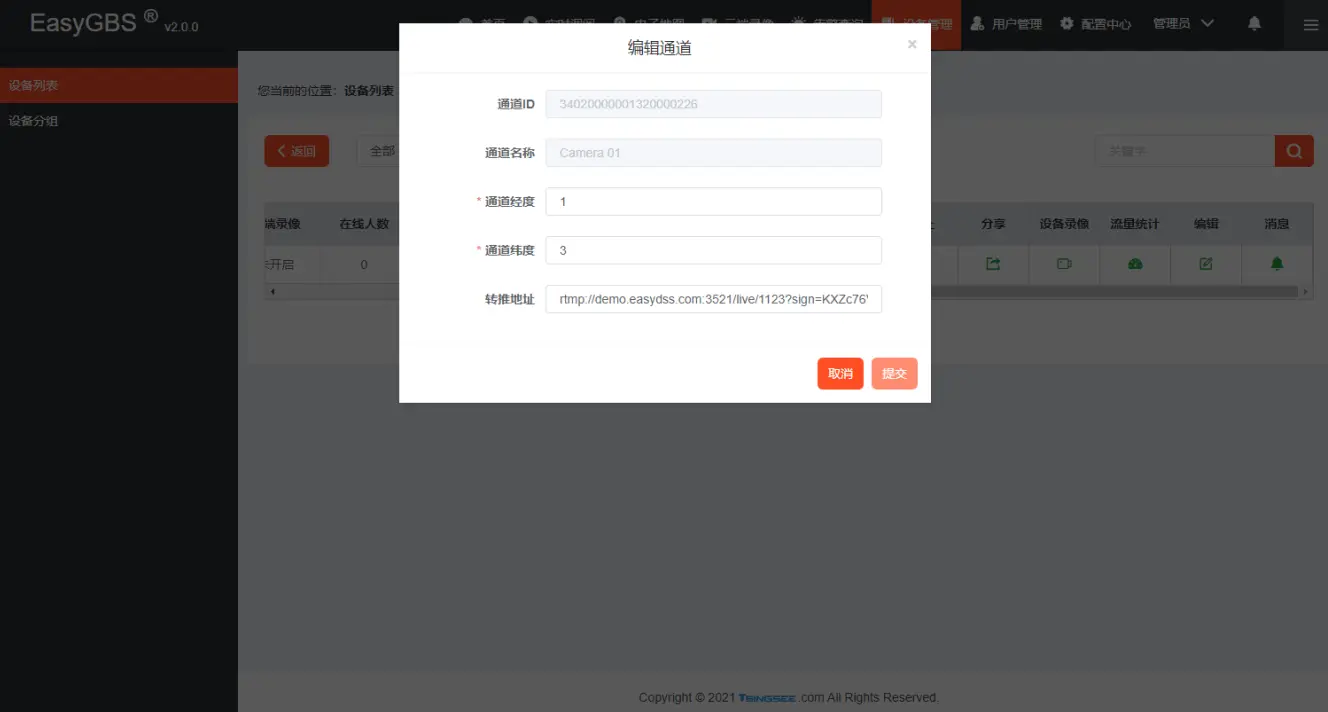 分析需求,用户需要在EasyGBS通道编辑中配置cdn地址,然后播放直播流的时候转推到这个cdn地址,最后在cdn地址中能够看到设备传递的流数据。