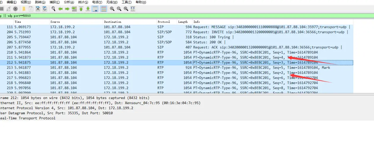 于是我们进入到该现场进行抓包检查,可以看到有设备其实已经发送了流,但是传输中出现了乱序的问题,这个乱序对视频的播放存在一定的影响,但是不会导致视频流一直不能播放,于是我们考虑是系统视频流应答超时的问题。