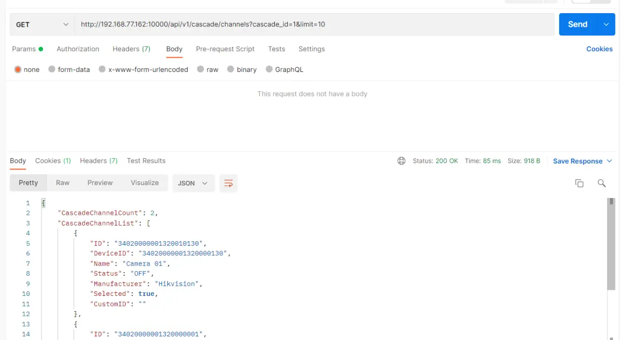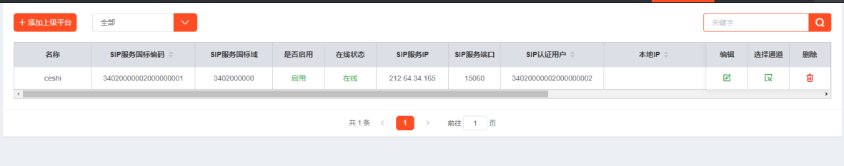 级联成功后就可以通过接口将通道传递给上级,首先调用获取级联列表接口: