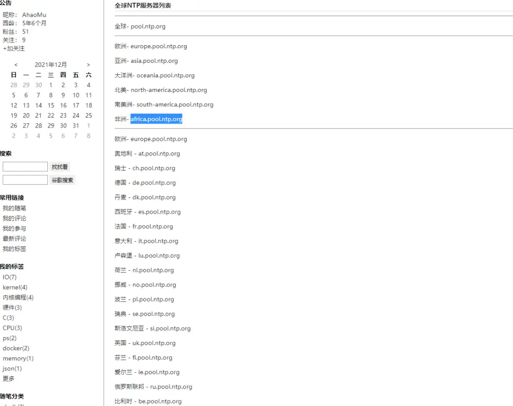 找到对应国家或地区的NTP服务器地址(这里以非洲为例):