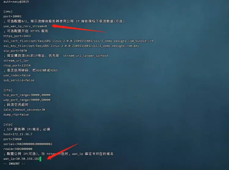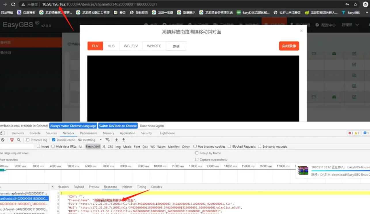 这种情况就是代表虽然用户是公网访问,但是获取流的地址还是内网的地址。解决这个问题就是在easygbs.ini文件里面配置wan_ip并且不配置公网收流,然后重启服务,就可以看到是走公网ip发流了。