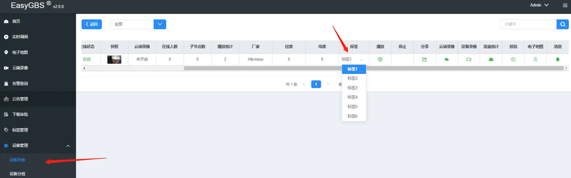 3.在设备管理-设备列表-查看通道,在设置该通道的标签,如图: