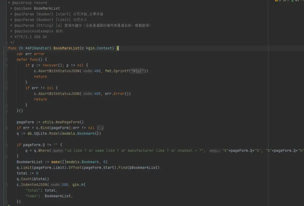 标签列表获取:用户可根据分页大小、模糊查询来查询标签列表,代码如下: