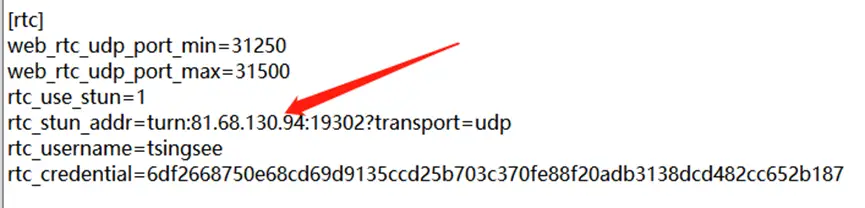 然后在easygbs.ini配置文件中,修改rtc_stun_addr参数为stun:turn.tsingsee.com:19302;