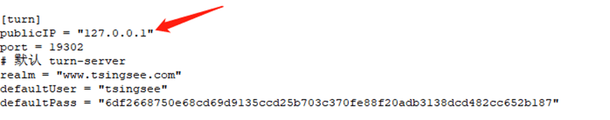 首先在stund的Turn.toml配置文件中,将publicIP参数修改为公网或内网IP;