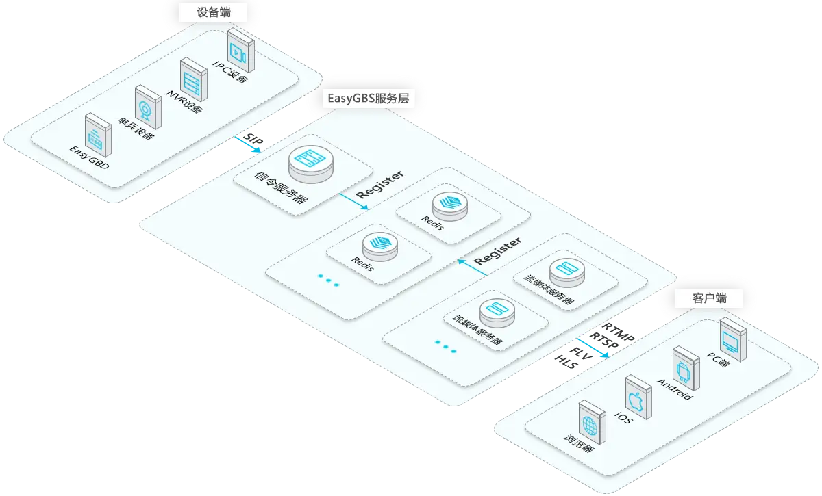 作为支持国标GB28181协议的视频监控平台,EasyGBS平台使用场景非常广泛,只要是网络监控摄像机IPC、硬盘录像机NVR、且设备支持标准的GB/T28181协议,都可以通过标准化协议注册到EasyGBS平台,进行监控区域的视频直播、监控视频录像检索与回看、云台控制等操作。
