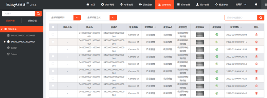 国标GB28181协议EasyGBS平台修复告警录像单个设备查询为空的问题