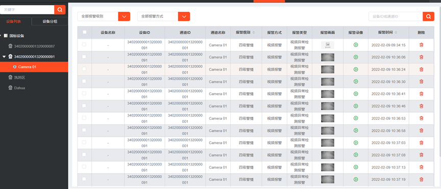 此外,国标GB28181协议EasyGBS平台还拓展了告警上报功能,当前端设备包含报警布防功能时,用户可以定义设置好设备的报警信息,EasyGBS平台则可以获取到设备的报警信息,同时,还可以同步抓取到所有设备记录的报警状态,并将设备的报警级别、报警方式、报警类型、报警时间进行统一展示。