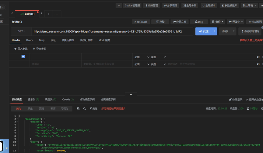1)首先,先调用EasyGBS的登录接口获取token,如图: