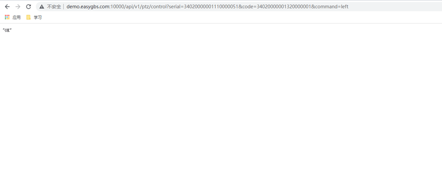 5)然后调用云台控制接口,返回接口为OK,这就代表调用成功了,如图: