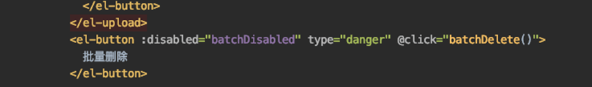 用户对当前页全选后,批量按钮才会通过batchDisabled属性控示激活状态,才能点击触发batchDelete批量删除函数。