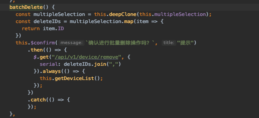 调用删除接口传递要批量删除的参数,至此批量删除功能完成。