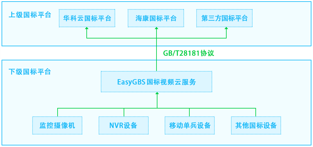 国标GB28181协议的EasyGBS视频平台,其显著特点之一是支持平台之间的级联,能有效实现资源之间的整合与数据共享。EasyGBS可以让下级平台(包含摄像机、支持GB28181的视频平台)级联到EasyGBS,也可以作为下级平台,通过GB28181方式级联到支持GB28181的上级平台。通过这种灵活的平台级联功能,可实现与其他独立系统的资源共享,在很多安防场景中均有应用,如明厨亮灶、平安乡村等。