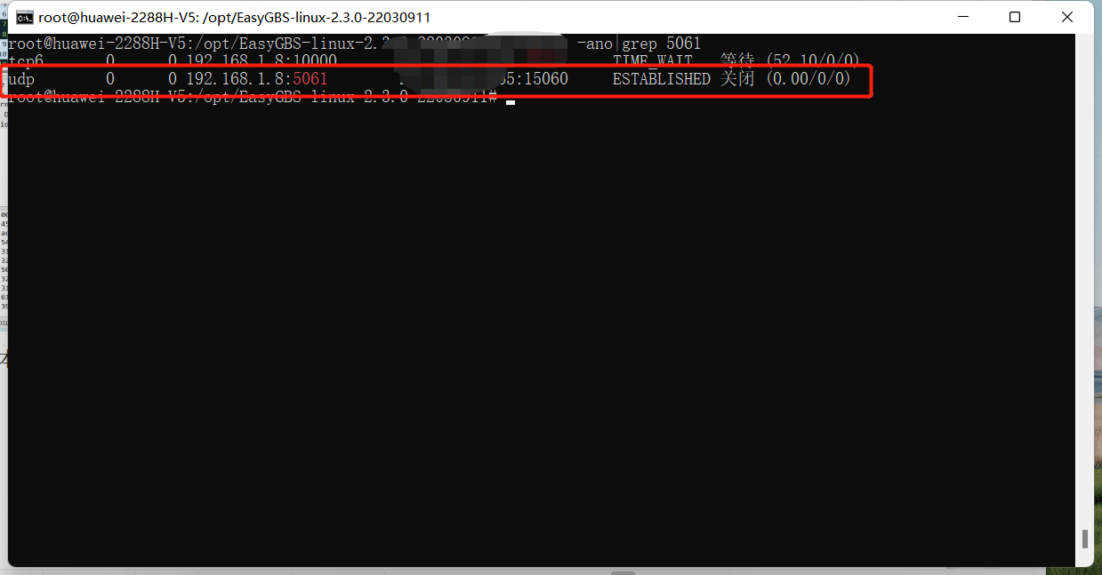2)本地使用netstat命令查看,发现EasyGBS向上级级联的端口,以前级联过其他国标平台。