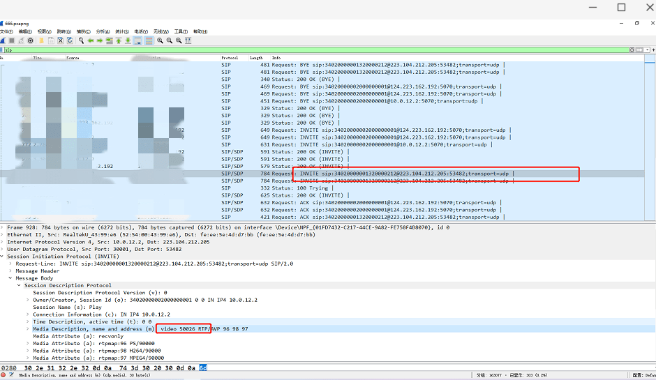 为了近一步确认是否是设备网络的原因,我们用wireshark进行了抓包,可以从下图中看出,平台向设备发出了一个请求,生成的video随机端口50026。随后我们根据这个端口过滤查看有没有视频流传输过来。
