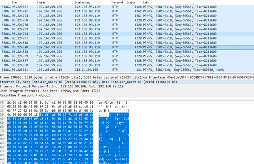 首先,我们进行抓包分析。从抓包的数据分析得知,Seq这个参数有重复,这表示包多发。