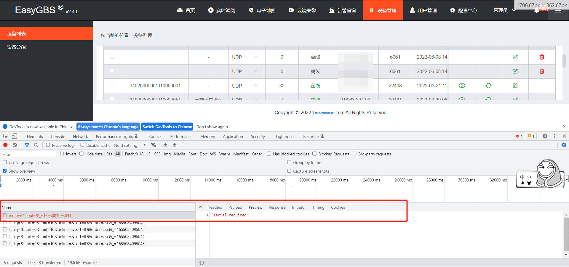 我们在测试平台时发现,设备注册到EasyGBS时,若设备ID信息未填写,也能成功注册上来,但是这些设备属于无效数据,如图: