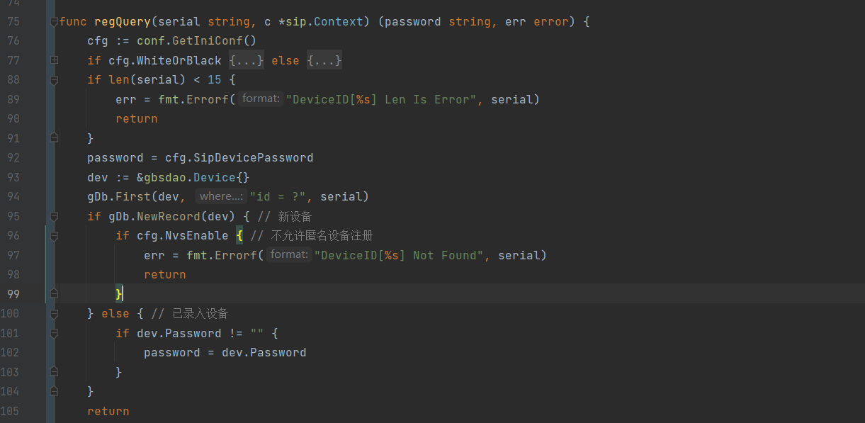 如果平台被恶意注册,则有大量空设备ID的记录,会引起程序问题,所以我们对此进行了优化。在代码模块中,在注册逻辑中会判断设备ID的内容是否为空,不允许匿名设备向平台注册。
