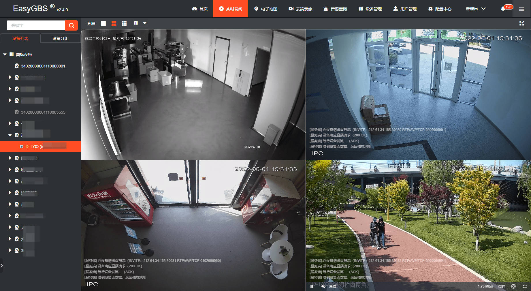 EasyGBS是基于GB28181协议的视频平台,支持视频监控直播、录像、存储、录像检索与回看、云台控制、语音对讲、告警上报、平台级联等视频能力。除此之外,平台还具备GIS地图、GPS/北斗定位功能,设备可以通过4G无线网络实时向EasyGBS平台传输设备位置信息,方便用户定位当前位置。常见的场景有:结合移动执法仪、移动单兵设备在执勤、巡检等场景中进行应用。感兴趣的用户可以前往演示平台进行体验或部署测试。
