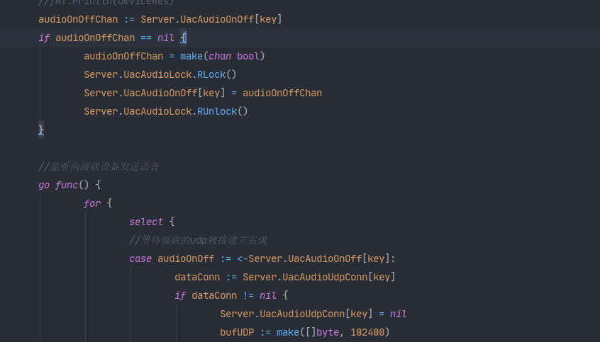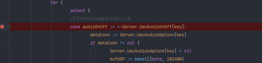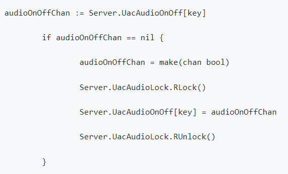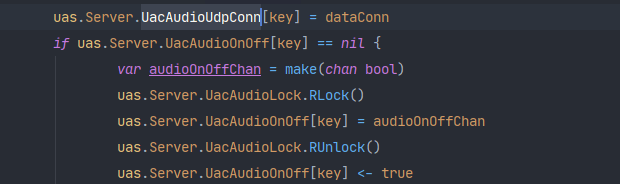 由于是先取值在赋值,取值的时候还没有赋值,所以,虽然UacAudioOnOff是通道,但是因为取值的时候是nil,所以,在之后即使赋值过后,这边也不会取到了。