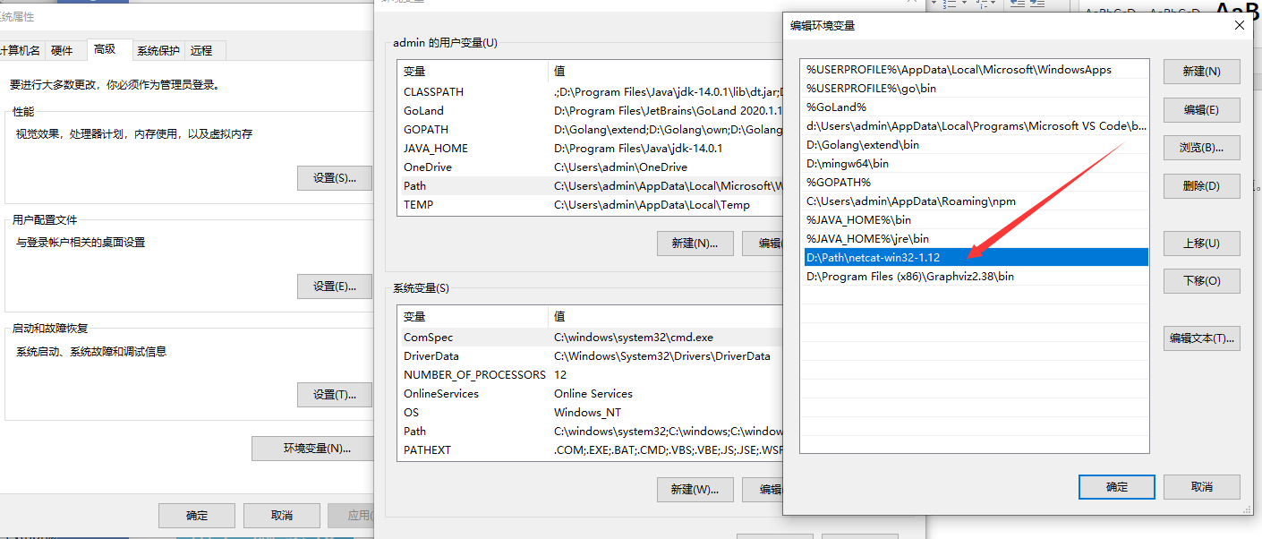 3)下载nc工具(地址https://eternallybored.org/misc/netcat/),下载后配置环境变量;