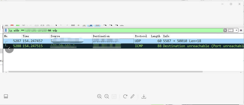 6)随后进行动态交互,通过抓包分析发现,外网访问不了50198端口,只有内网能访问传输数据,但是50010端口内外网都能访问;