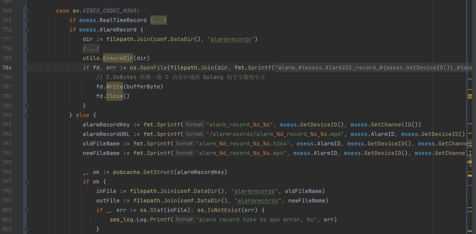 设计逻辑:在判断流为H.265时,保存告警视频和截取快照即可。
