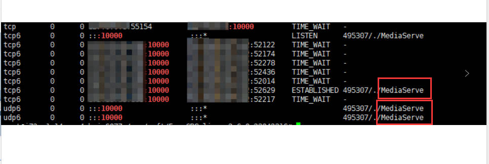 2)查看服务器监听端口,发现10000端口被其他服务占用;