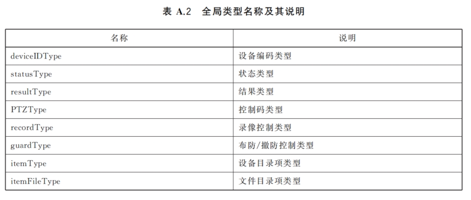 本标准声明的全局数据类型如下表所示,全局数据类型是指XMLSchema类型或是Schema元素的直接子项,可以在不同位置被多次引用。