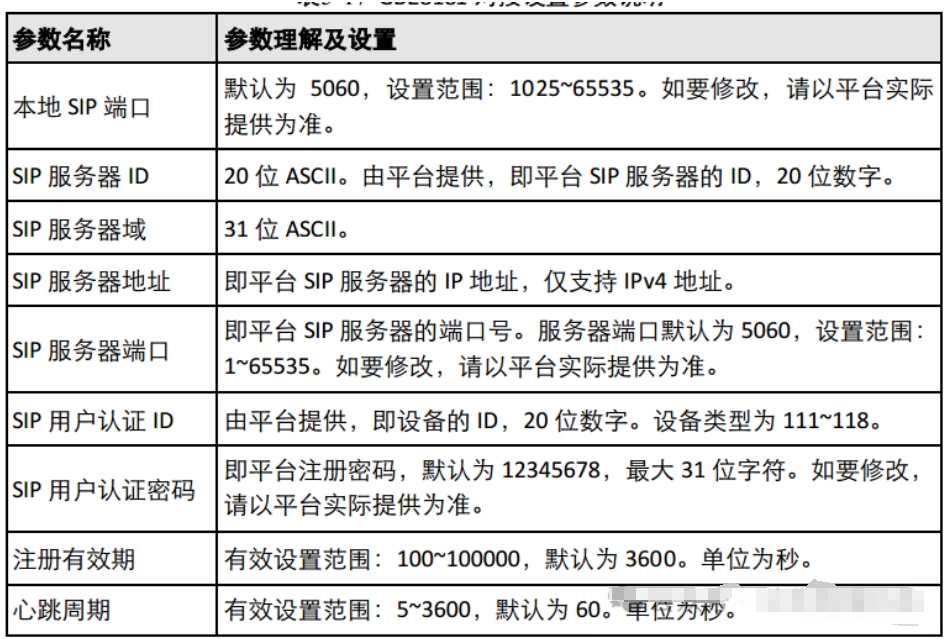 GB28181对接设置参数说明