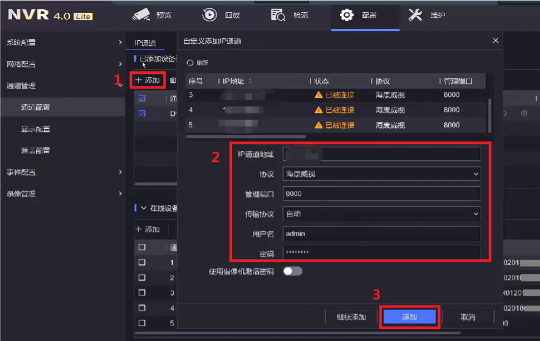 一、海康录像机添加多通道摄像机的基本步骤