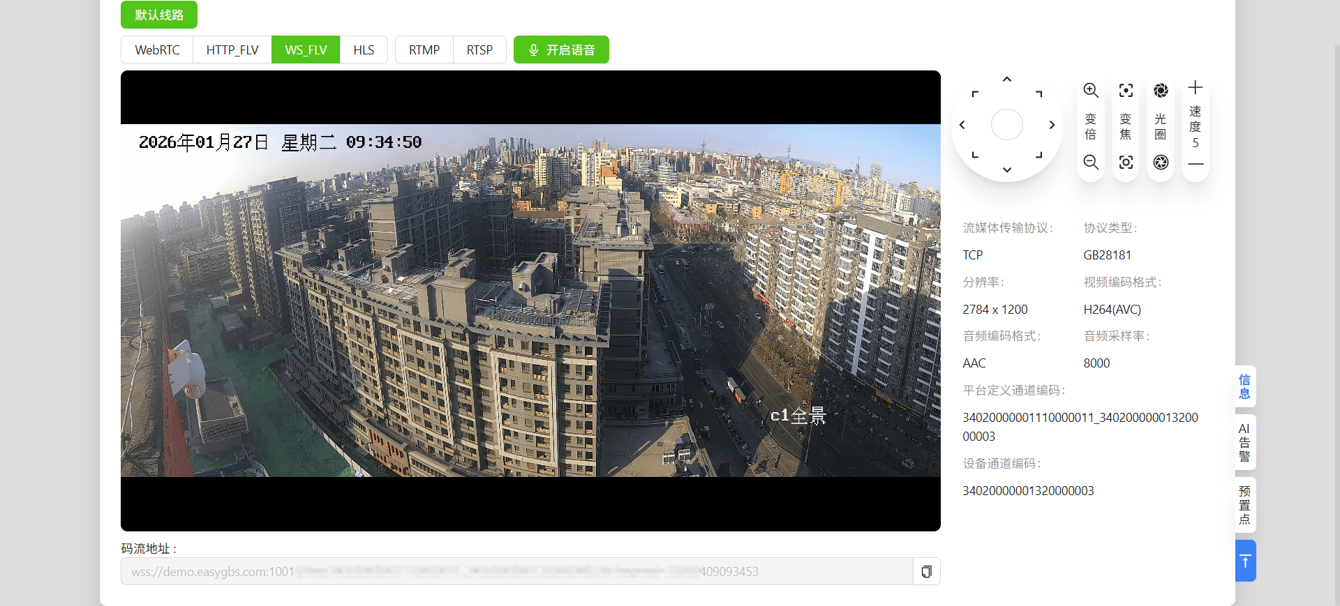 在监控操作层面,EasyGBS支持丰富的视频控制功能。用户可进行暂停、音量调节等基础操作,还能实时截图、录制视频留存证据,通过画面放大捕捉细节,或切换全屏查看,为保护区监管提供便捷高效的操作体验。平台支持1、4、6、9、24分屏及全屏灵活切换,适配多场景监控需求。