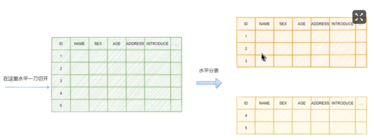 水平分表:则是因为一张表内的数据太多了,上文提到数据越多B+树就越高,访问的性能越差,所以进行水平拆分