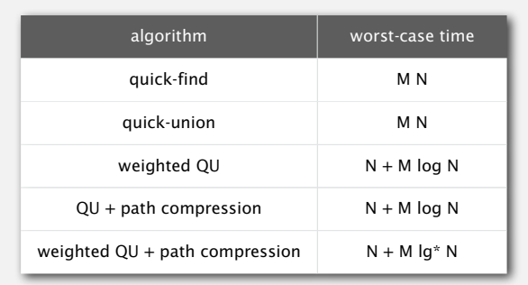 find和union操作是和p和q的深度成正比。但是这个算法任何节点x的深度不会超过lg N 这里lg指的是2为底。