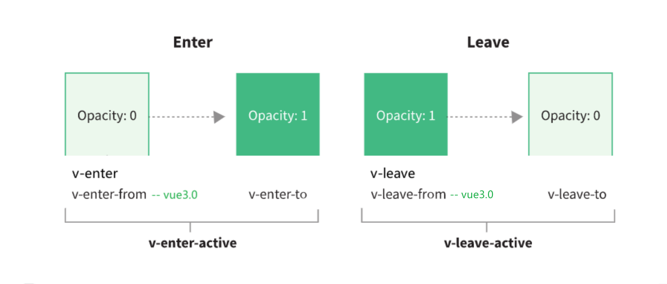 1 // 元素消失后的样式 2 .v-enter, 3 .v-leave-to { 4 transform: translateX(20px); 5 opacity: 0; 6 } 7 8 // 进入和离开的动画 9 .v-enter-active, 10 .v-leave-active { 11 transition: all 1s ease; 12 }
