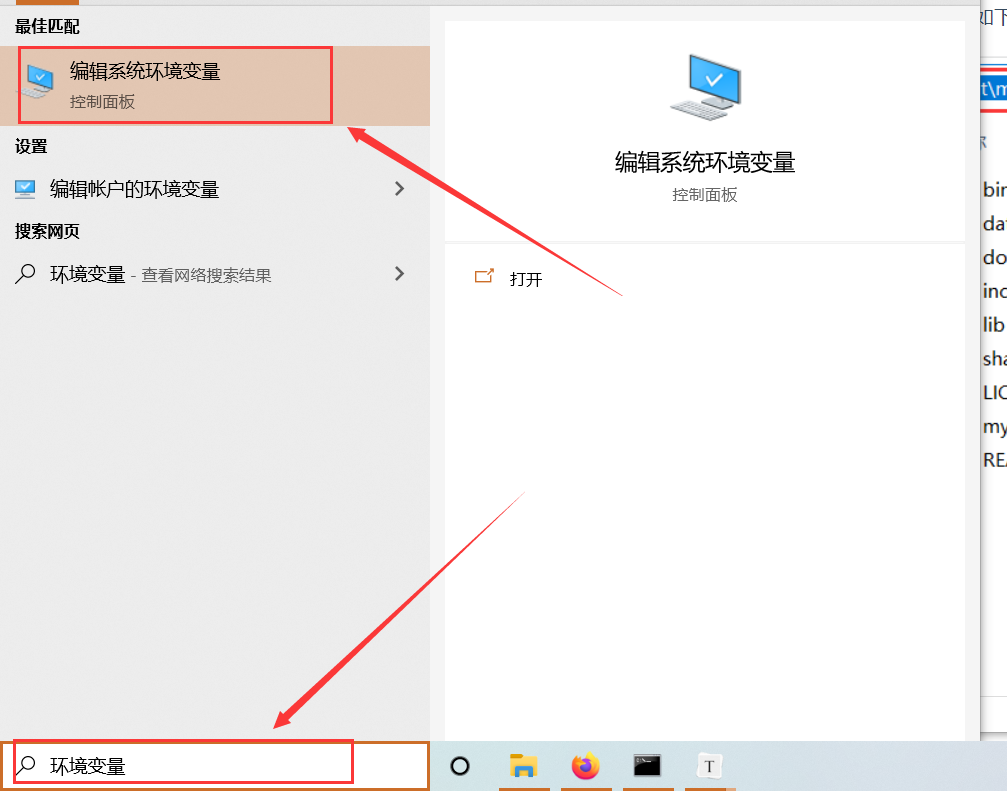 在Windows10自带的搜索框中搜索环境变量,选中编辑系统环境变量,如下图所示。