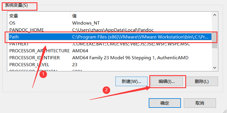 在下方系统变量中,找到Path,点击编辑。
