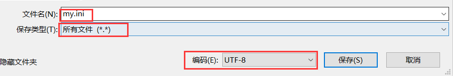 保存时注意下格式,选择所有文件(*.*),编码方式选择UTF-8